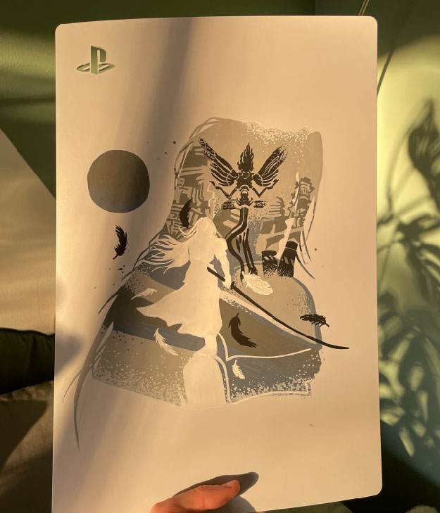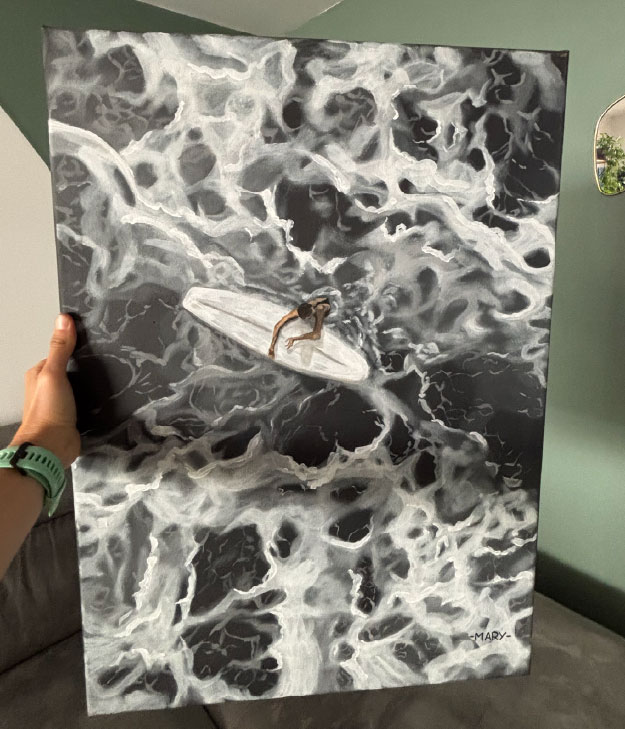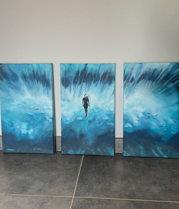 Passionnée de dessin depuis toujours, je propose également la réalisation de tableaux, aquarelles personnalisées, customisations de façades de PS5, … Je partage ces réalisations sur ma page Instagram artiste : @MaryJohnDraw